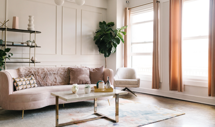 Before: Outdated furniture and clutter After: Neutral tones, elegant accents, and airy presentation